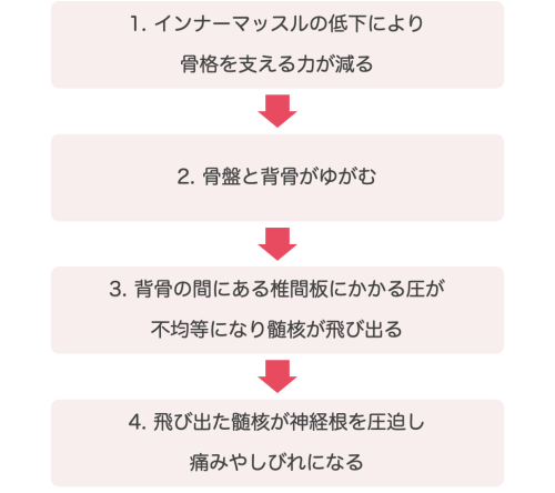 椎間板ヘルニアや腰痛を繰り返す方は、まず間違いなくインナーマッスルが弱っています。