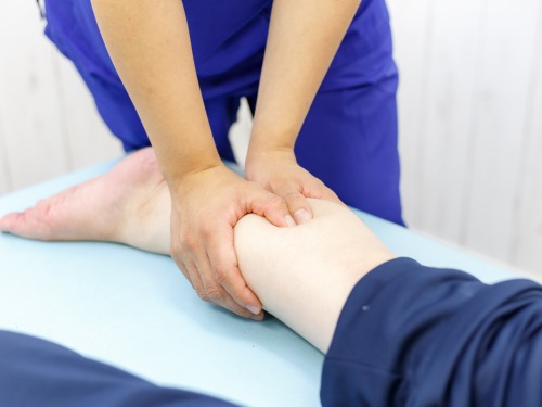 徒手マッサージ療法では、膝の動きを細かくチェックし前後左右の筋肉バランスや靭帯の緊張を把握しそれを整えることにより、膝にかかる負担や動きのスムーズさが出て、痛みを改善させていきます。